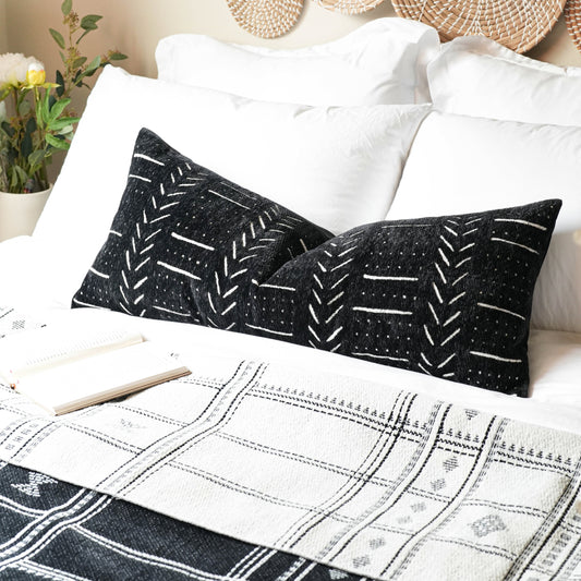 Handmade Black Woven Lumbar Pillow Cover 14x36