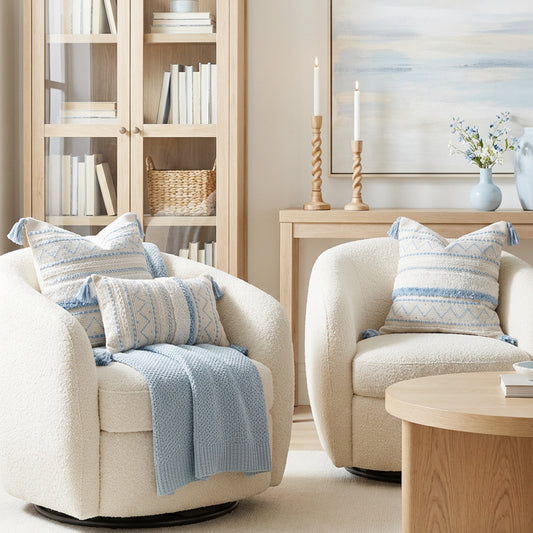 Serene Boho Woven Throw Pillow Cover - Blue