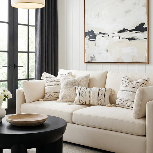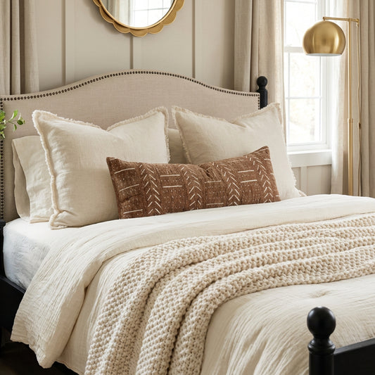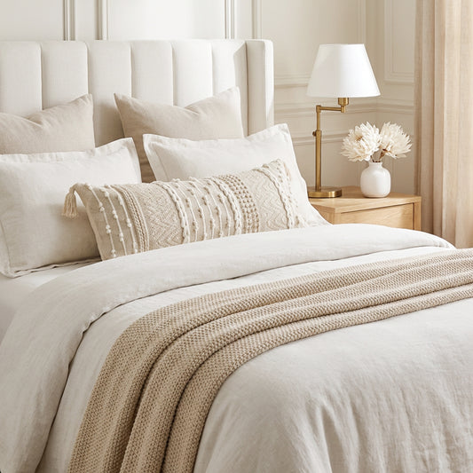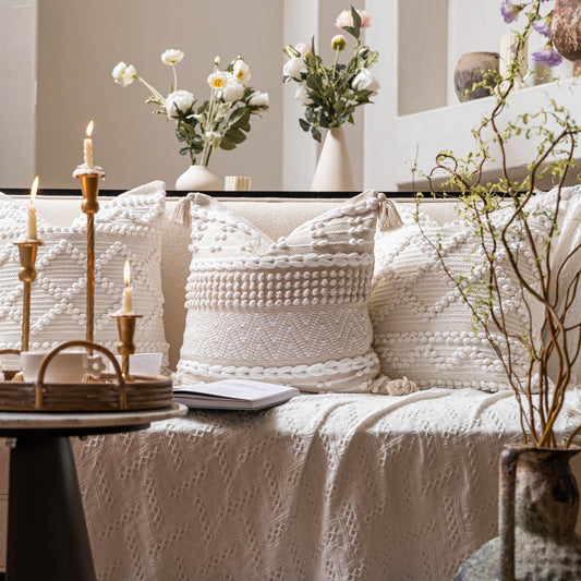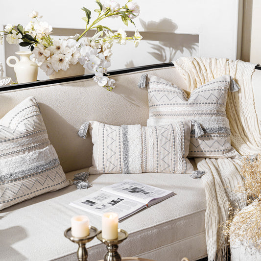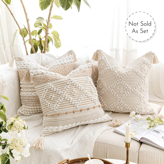 Serene Boho Woven Throw Pillow Cover - Cream