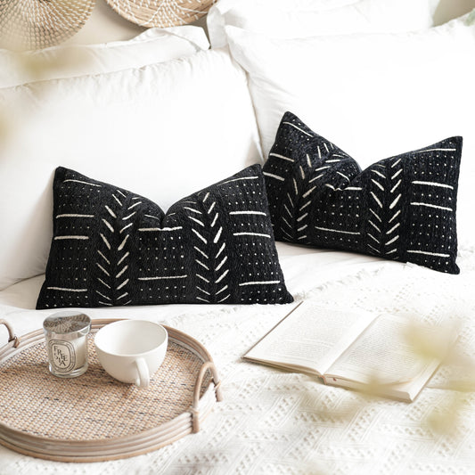 Serene Boho Woven Throw Pillow Cover - Black