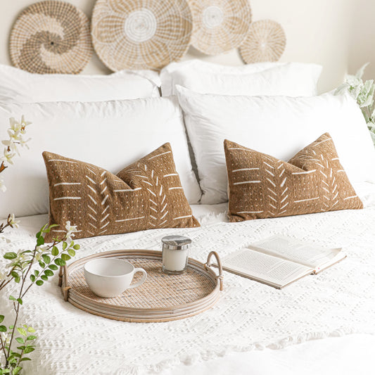 Handmade Brown Beige Boho Woven Lumbar Pillow Cover 14x36