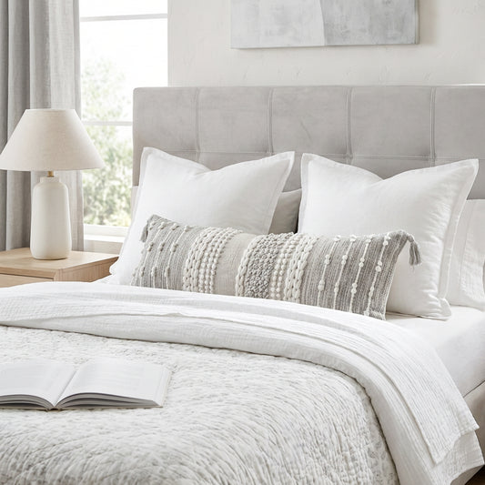 Handmade Gradient Gray Lumbar Pillow Cover 14x36