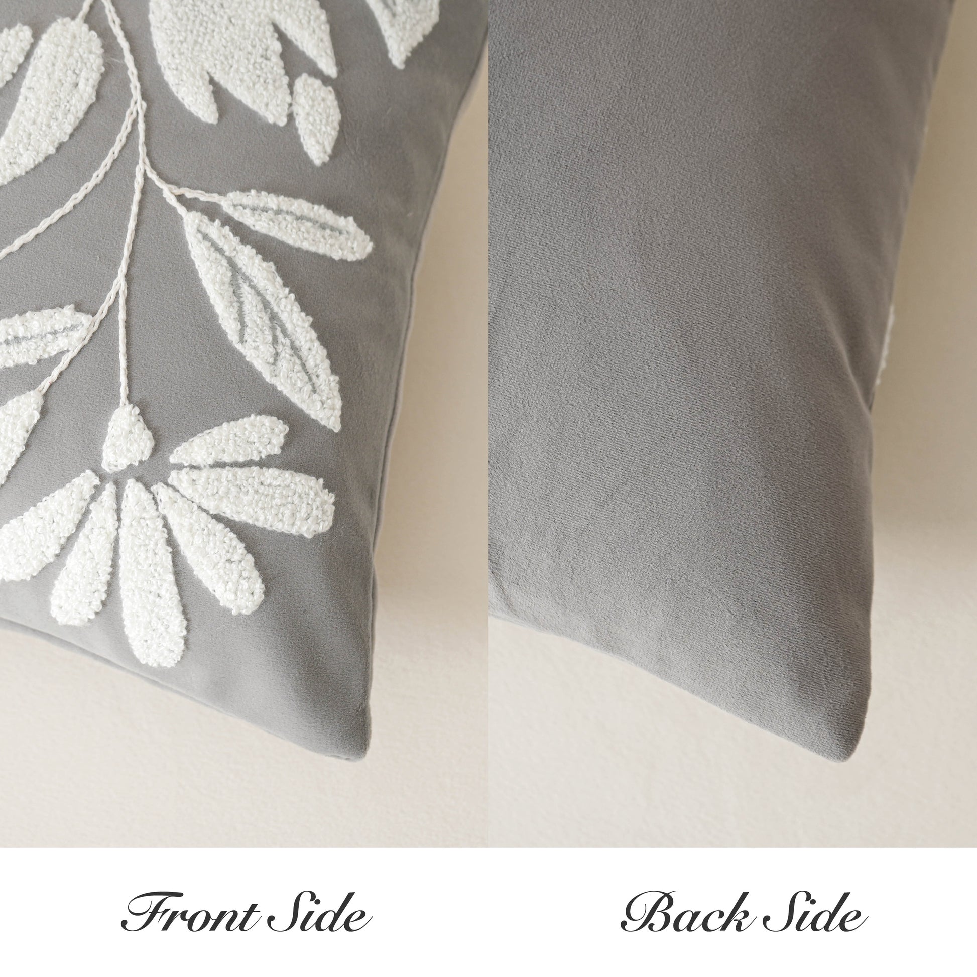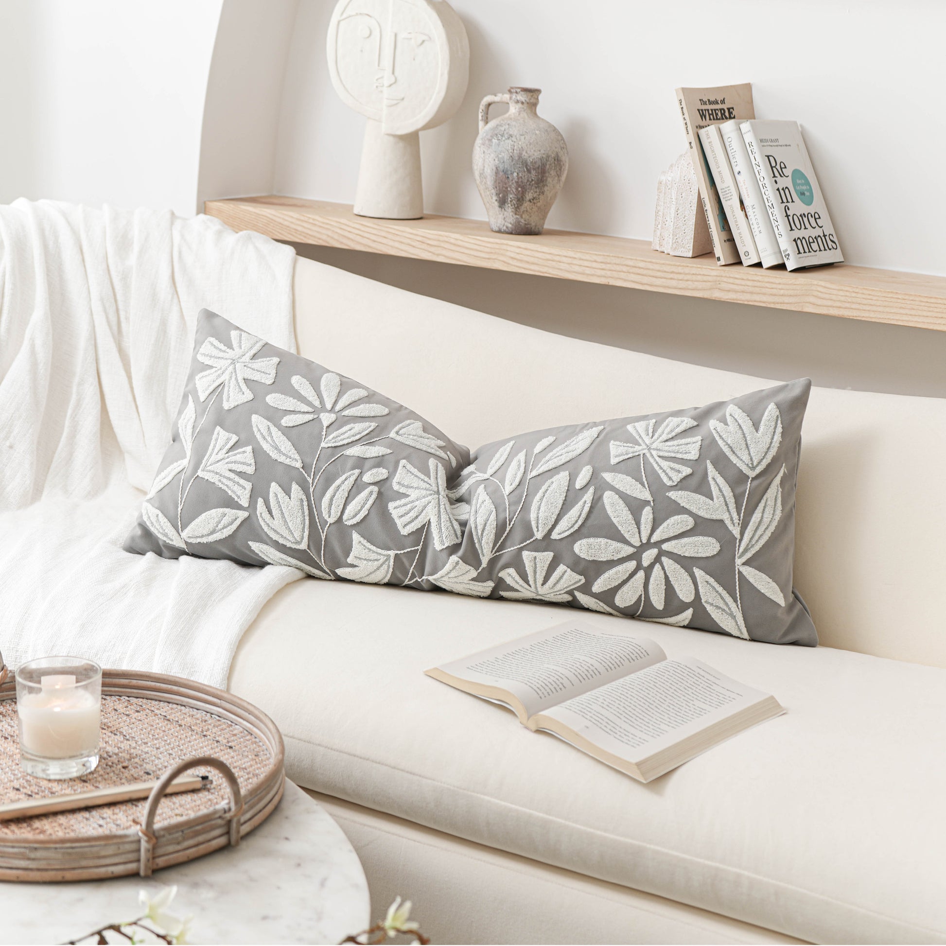 Velvet Soft Gray Flower Pattern Lumbar Throw Pillow Cover 14X36 inch