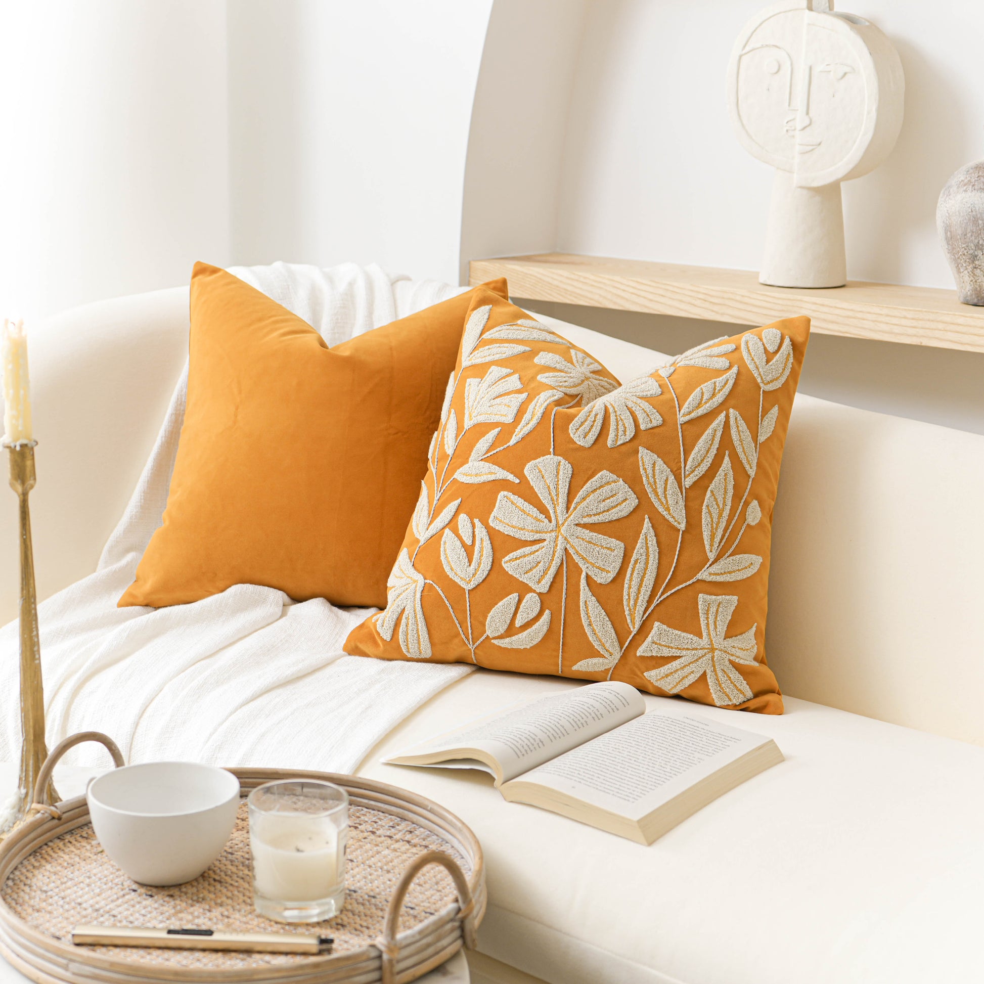 Velvet Soft Yellow Mustard Flower Pattern Throw Pillow Cover