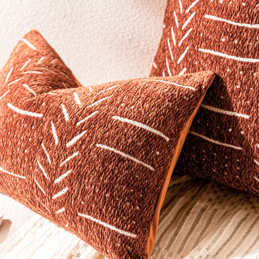 Chenille Soft Brick Red Pattern Throw Pillow Cover