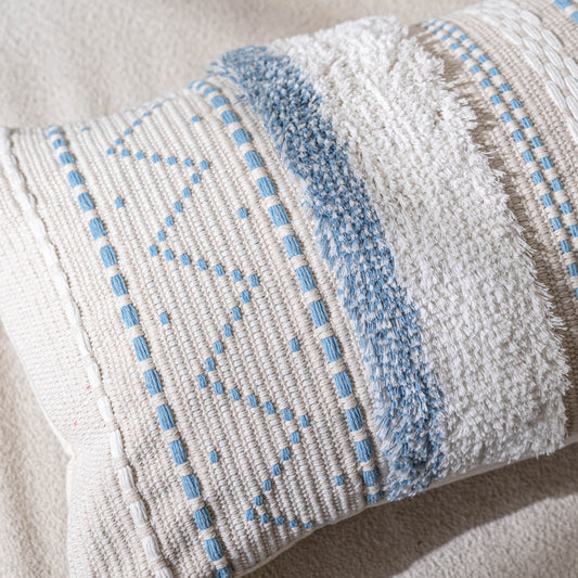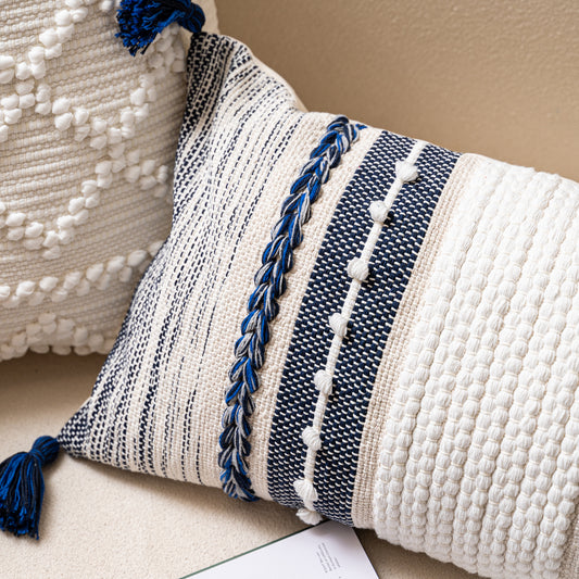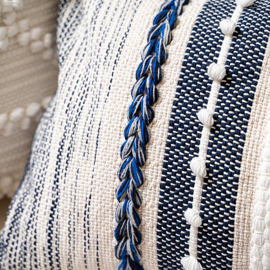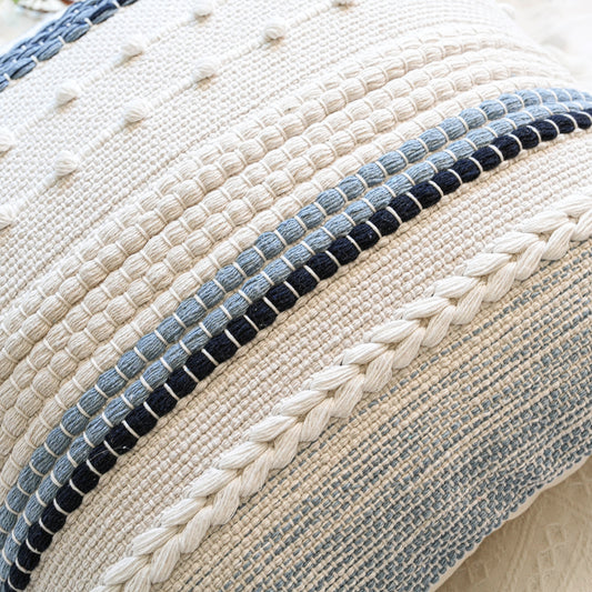 Handmade Coastal Blue Boho Woven Square Pillow Cover 20x20 22x22
