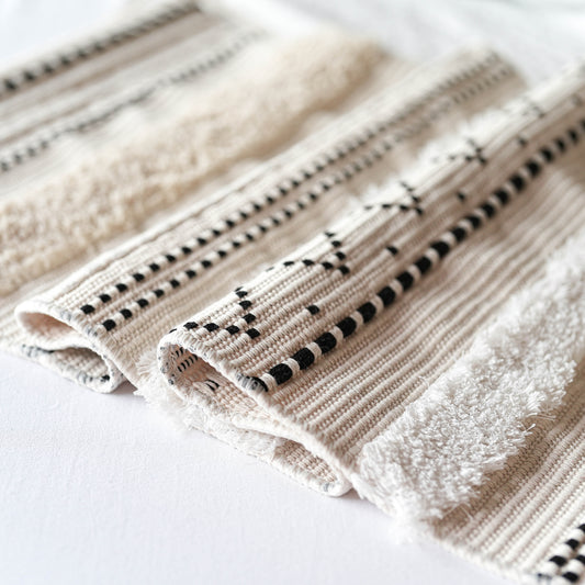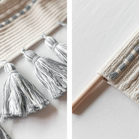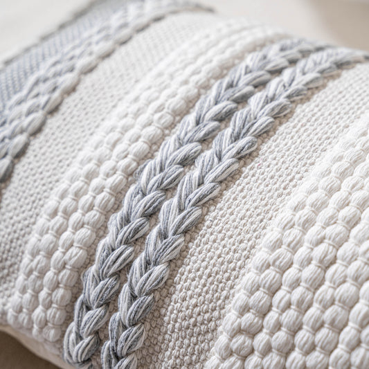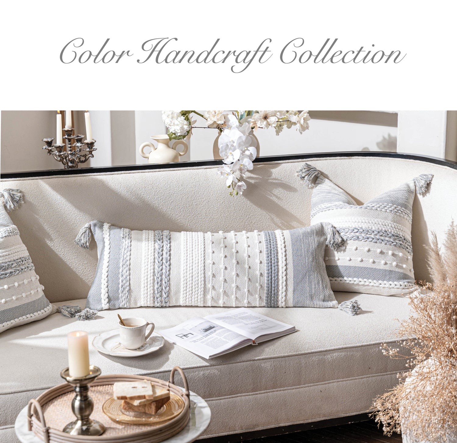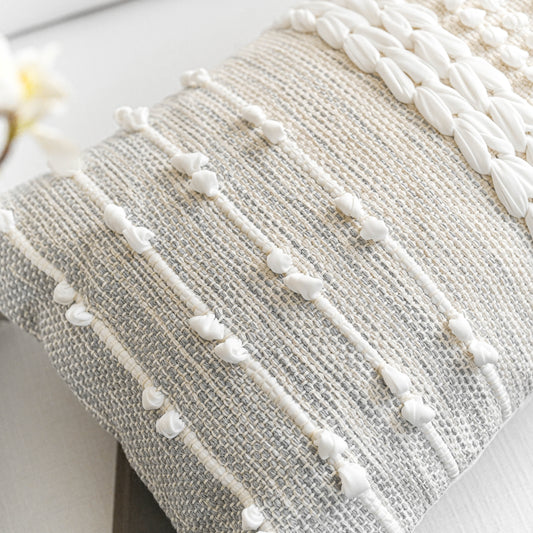Handmade Gray White Boho Woven Lumbar Pillow Cover 14x36