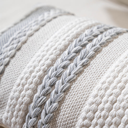 Handmade Gray White Boho Woven Square Pillow Cover 20x20 22x22