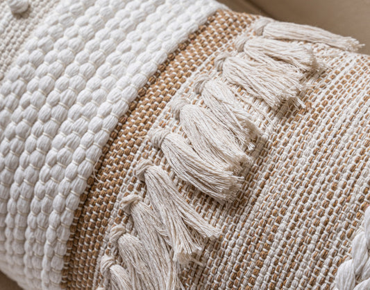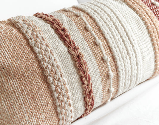 Handmade Brown Beige Boho Woven Lumbar Pillow Cover 14x36