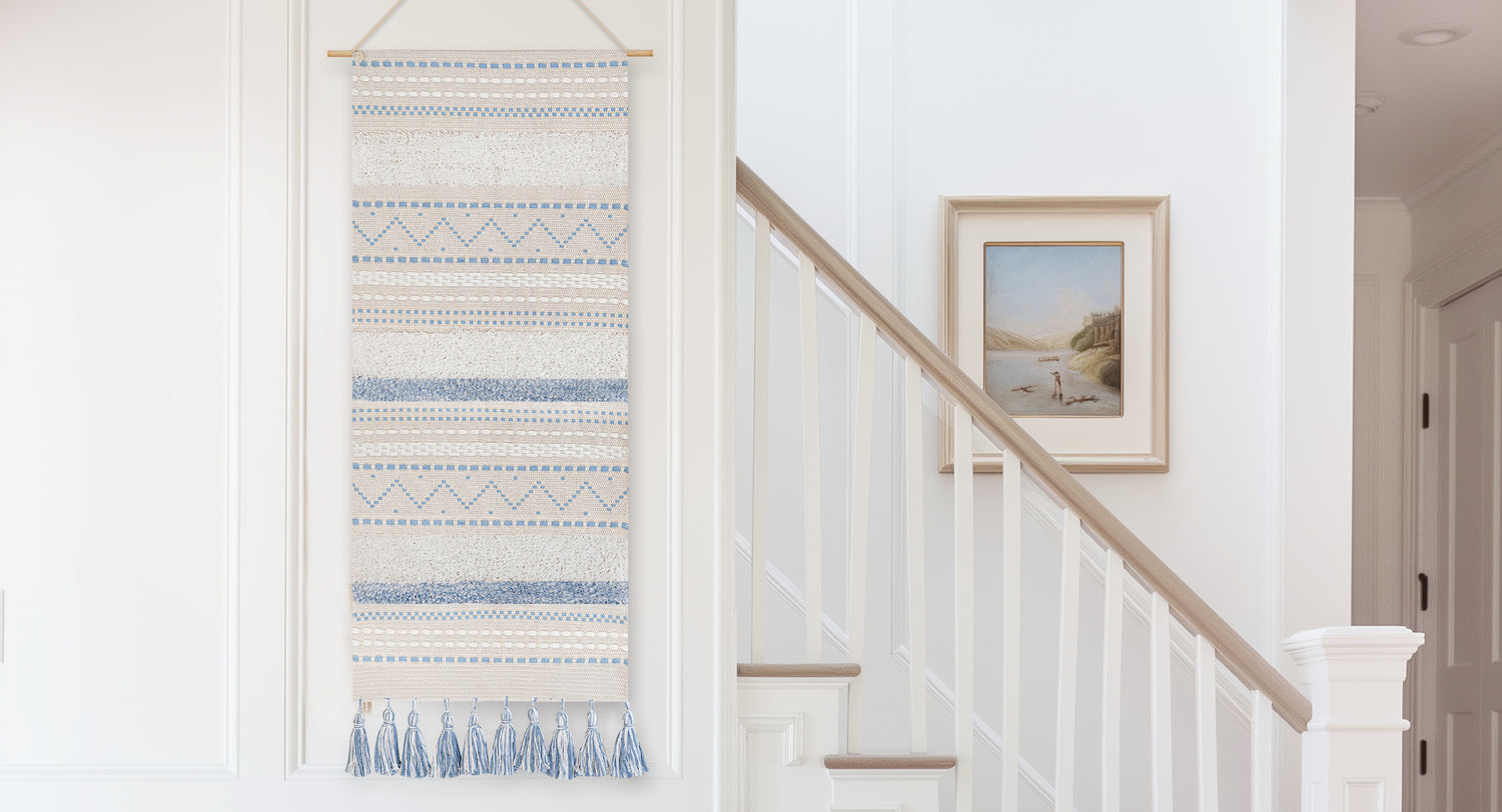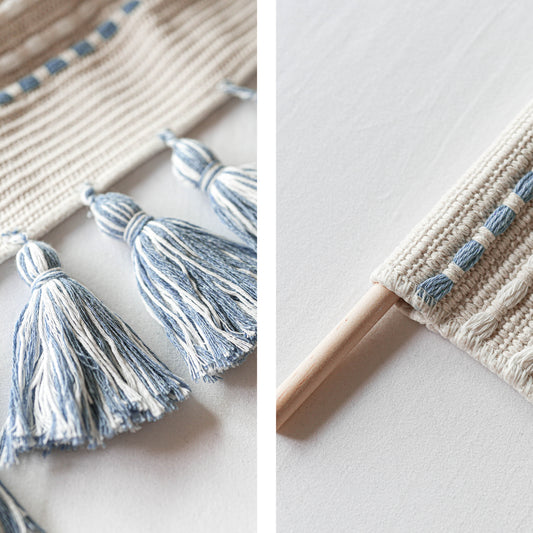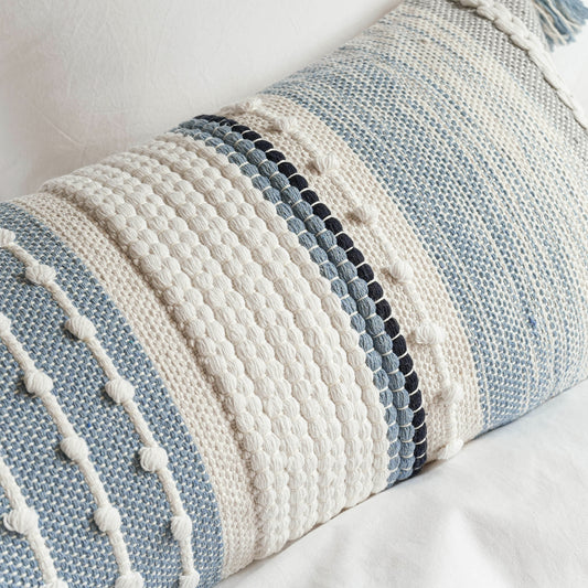 Handmade Coastal Blue Boho Woven Lumbar Pillow Cover 14x36