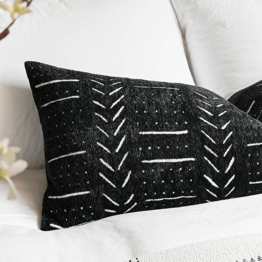 Chenille Soft Black Pattern Throw Lumbar Pillow Cover 14x36