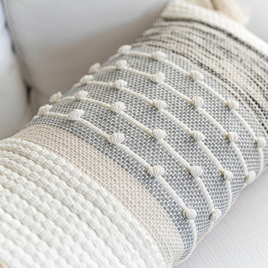Handmade Gray Boho Woven Lumbar Pillow Cover 14X36