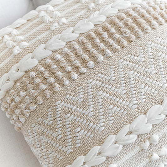 Handmade Beige Tufted Lumbar Pillow Cover 14x36