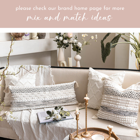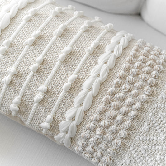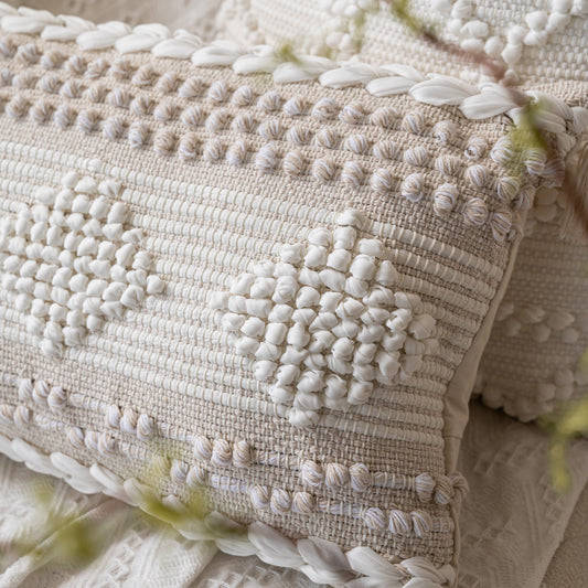 Handmade Cream White Tufted Lumbar Pillow Cover 14x36