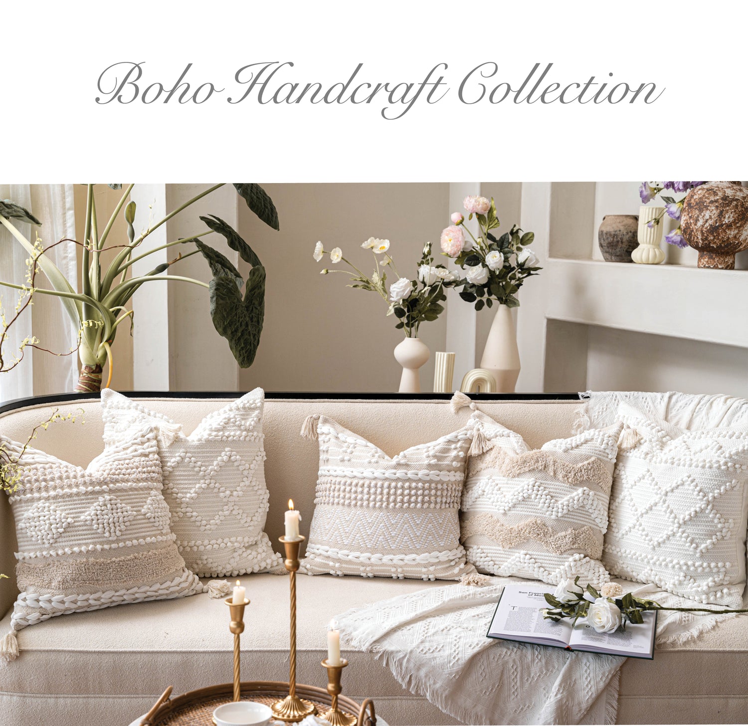 Handmade Cream White Tufted Square Pillow Cover 20x20 22x22